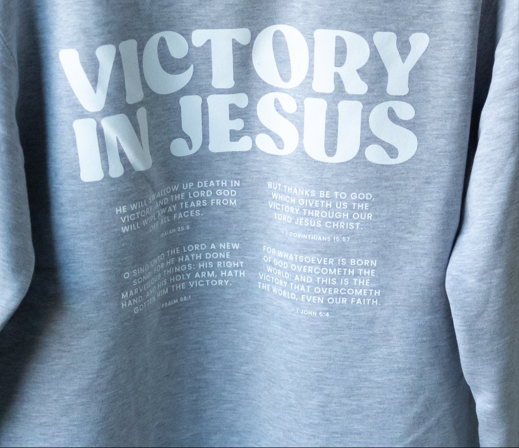 This ultra-soft crewneck combines everyday comfort with powerful spiritual meaning. Designed with a drop shoulder and relaxed fit, it blends modern style with timeless faith—making it more than just a sweatshirt. It’s a bold declaration of gratitude and triumph through Christ. Perfect for layering or wearing solo, this crewneck lets you show your faith wherever you go.